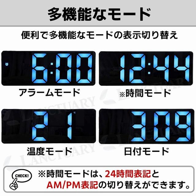 【多機能なモード】便利で多機能なモードの表示切り替えができます。アラームモード、時間モード、温度モード、日付モード※時間モードは、24時間表記とAM/PM表記の切り替えができます。