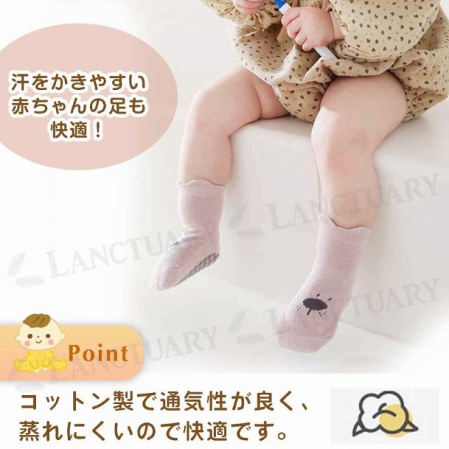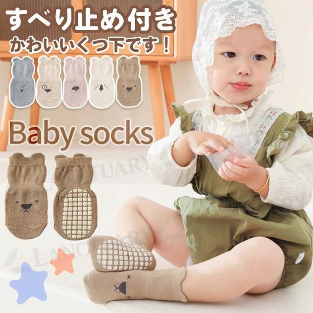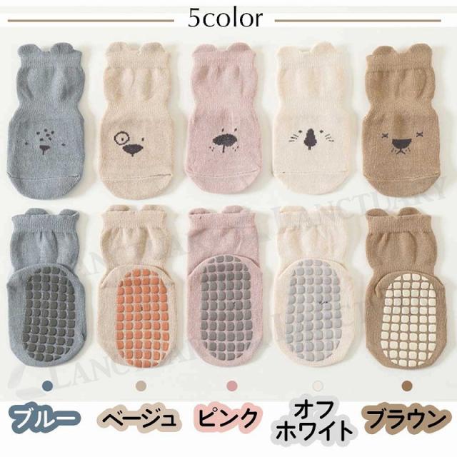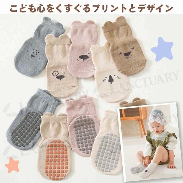 ベビー 靴下 滑り止め 5足セット 転倒防止 ベビー ソックス アニマル 可愛い かわいい ショート丈 ルームソックス 耳付き 新生児 乳児 幼児 幼稚園 保育園 子供