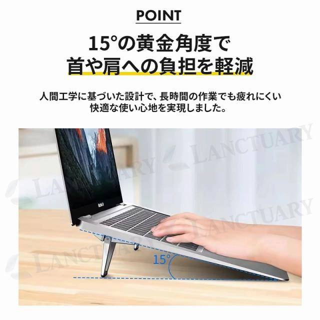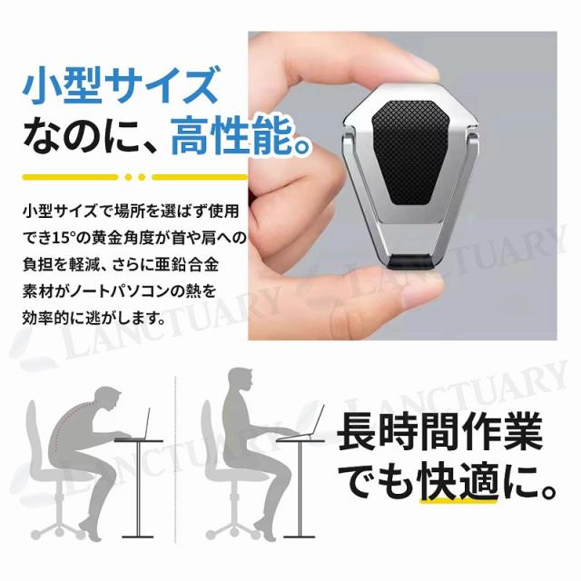 ノートパソコンスタンド ノートPCスタンド PCスタンド 折りたたみ 角度調整 高さ調整 持ち運び 軽量 小型 薄型 アルミ 放熱 冷却 姿勢改善 猫背防止 肩こり軽減