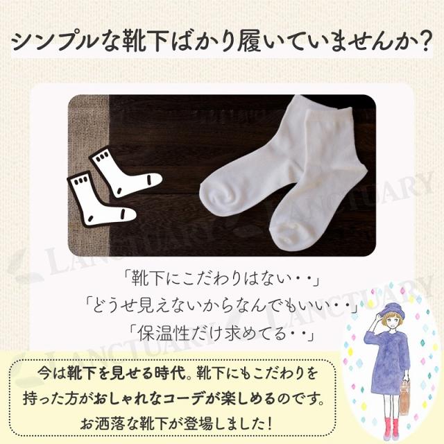 ワンランク上のコーデを楽しむなら靴下までもしっかりこだわりたいもの。可愛らしいデザインがパッと目を惹く靴下が発売されました。短めのボトムスに合わせて全部見せても、長めのスカートやデニムに合わせてちょい見せするのも◎多色なのにがちゃがちゃしすぎず、統一感のある色合い。それでいてほっこりした温かみもある。秋冬はもちろん年間通してご使用いただけます。