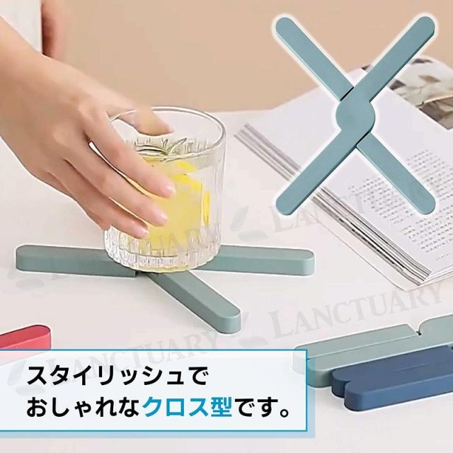 鍋敷き 折りたたみ式 折り畳み 鍋置き シリコン クロス X型 滑り止め 洗える 水洗い可 耐熱 ポットスタンド キッチン雑貨 おしゃれ シンプル マット 折り畳み