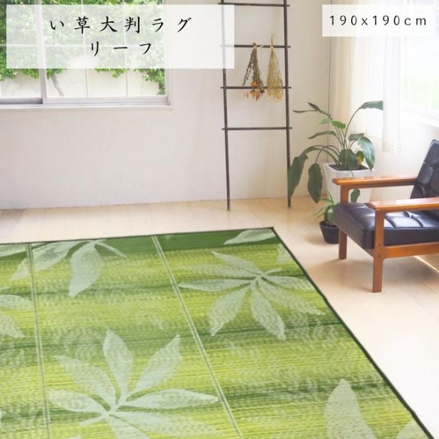 い草大判ラグ リーフ 190x190cm 2畳用 大判サイズ 裏面不織布 コンパクト収納 持ち運び楽々