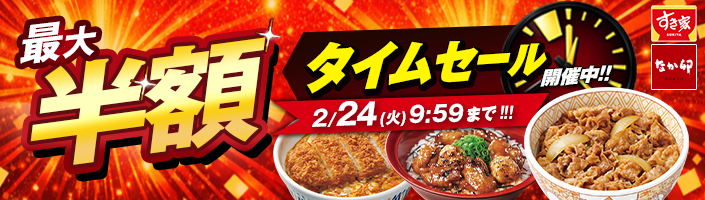 ▼最大半額セール実施中!すき家・なか卯のどんぶりの具がお買い得♪