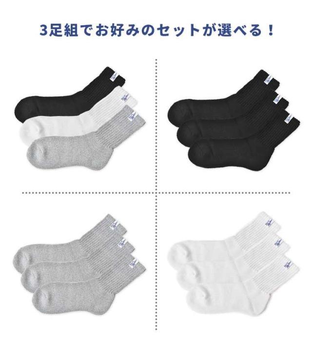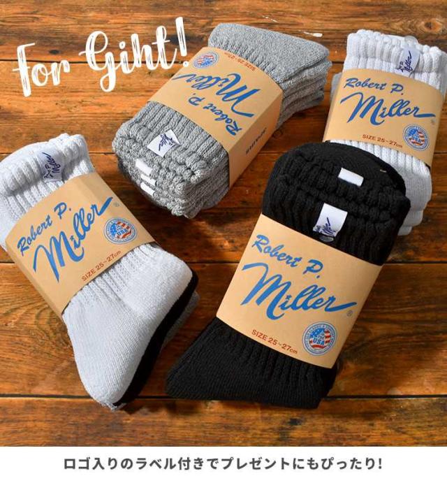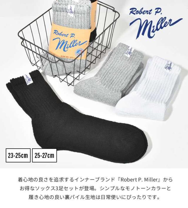 靴下 Robert P.Miller ロバートピーミラー メンズ レディース 3足セット 3P クルーソックス 23 24 25 26 27cm クルー丈 ロークルー リブソックス くつ下 まとめ買い ブランド パイル生地 厚手 大人 黒 ブラック 白 ホワイト グレー 無地 シンプル かわいい おしゃれ コットン