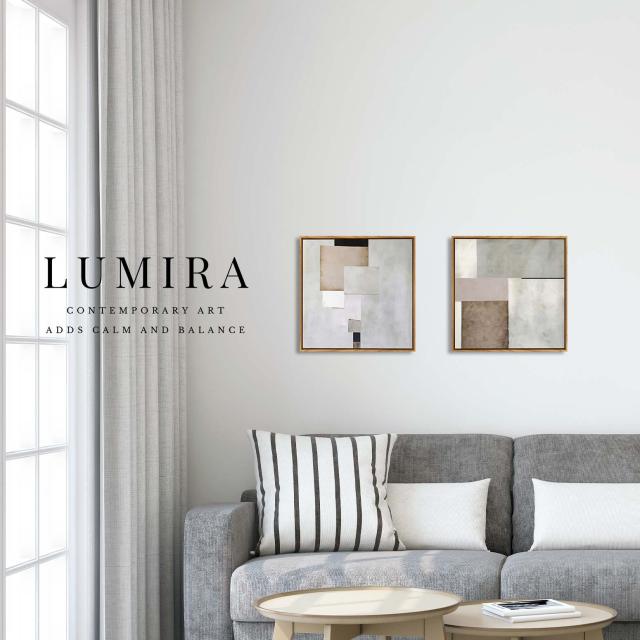 LUMIRA アートパネル 2枚組 32cm×32cm 北欧 インテリア 絵画 シンプルで控えめなデザイン 壁掛け リビング 玄関 寝室 ホテルライク 落ち着いたホワイトとベージュの組み合わせでお部屋に柔らかさをプラス 韓国 ミニマルインテリア