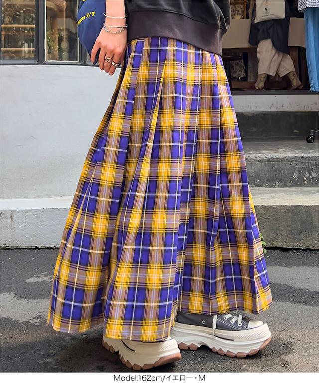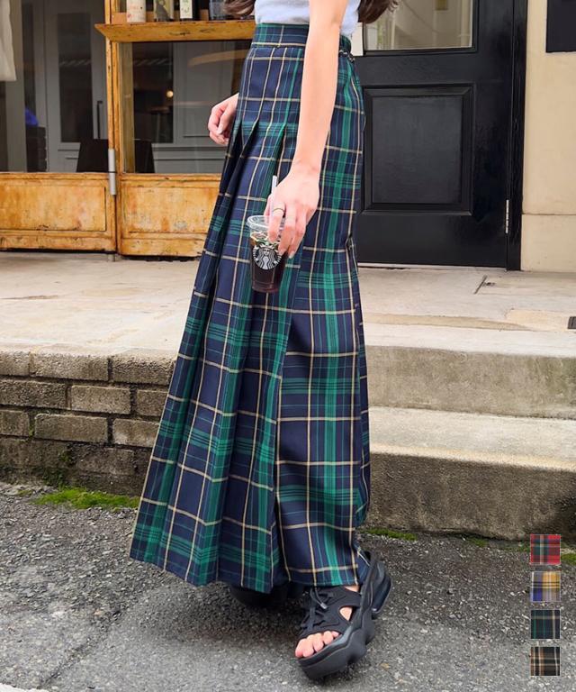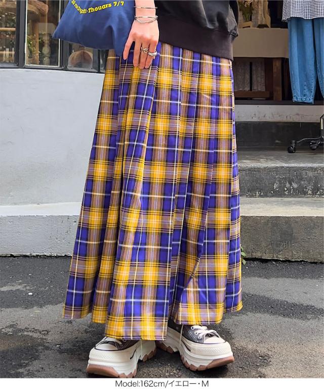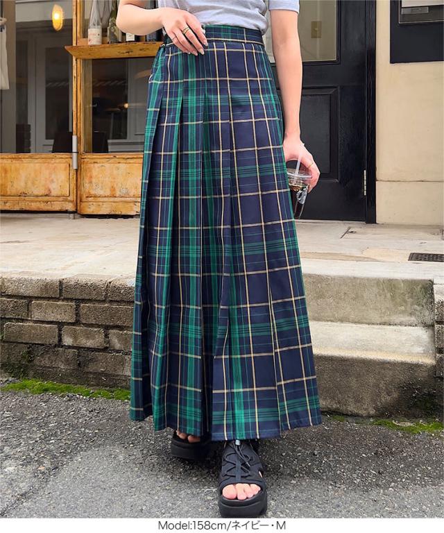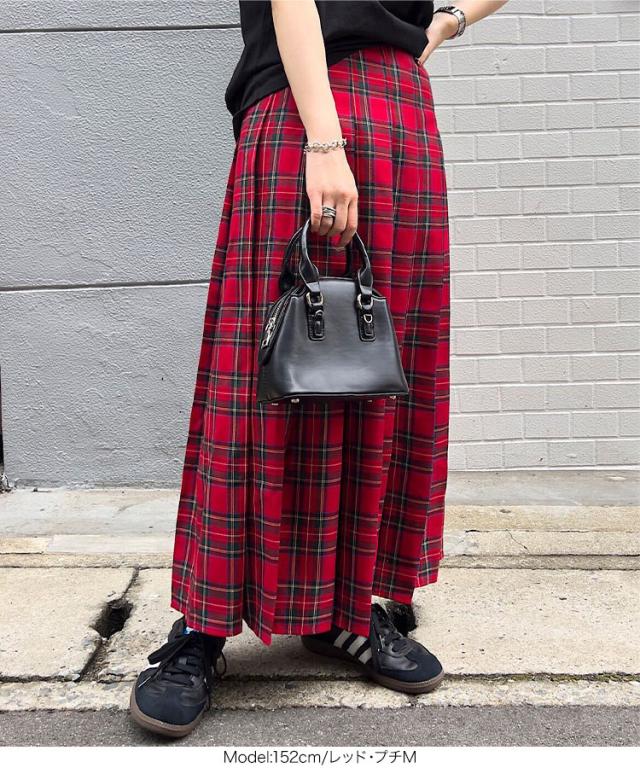 春新作 チェック柄プリーツスカート M4202 入荷済 レディース 20代 30代 40代 ボトム スカート ロング丈 プリーツ チェック バックゴム チェック柄 ちぇっく プリーツスカート ロングスカート マキシスカート 柄 低身長 プチ ゴム フリー レッ