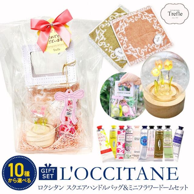 プレゼントに最適! ロクシタン ハンドクリーム ギフト 送料無料 スクエアハンドル クリアバッグ & ミニ フラワードーム セット ミニ フラワーライト チューリップライト 電池付き ロクシタンハンドクリーム ギフト 30ml タオルチーフ 誕生日プレゼント 人気