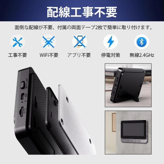 ワイヤレスインターホン子機とモニター親機はペアリング済みなので、配線工事やネットワーク設定が不要で、取付簡単です。
