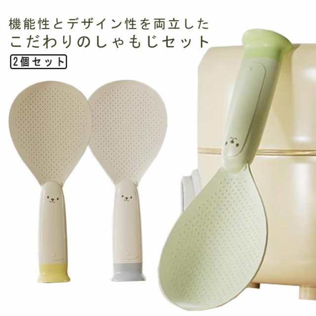 | 機能性とデザイン性を両立したこだわりのしゃもじセット 自立して衛生的。置き場に困らず、サッと手にとって使えます。 ご飯がこびりつきにくいシリコン素材を採用します。 フチが薄く、ご飯をつぶさずにサクサクすくえます。 お手入れ楽々!びっくりするほど汚れが落ます。 可愛いデザイン、プレゼントにもおすすめ♪ | |