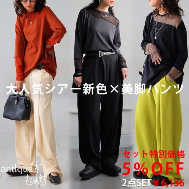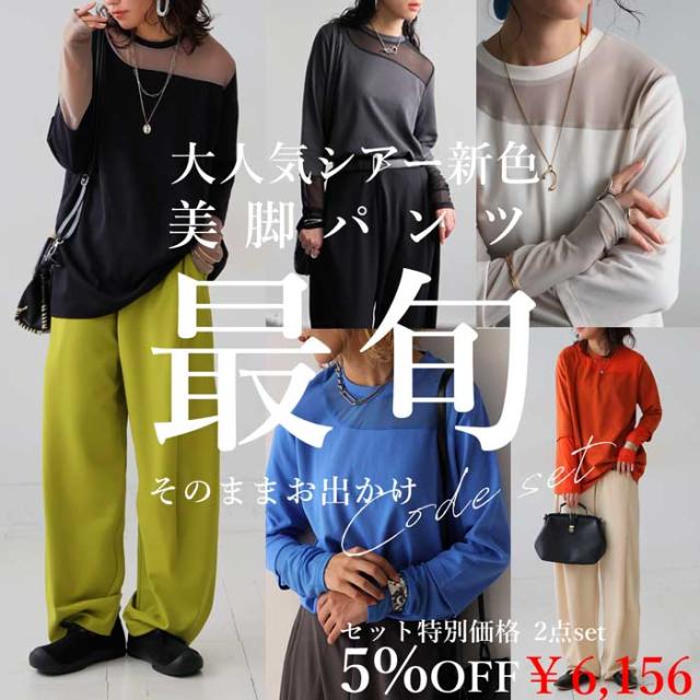 \洒落見えが叶う、旬のシアーデザイン×楽ちんパンツの2点SET/