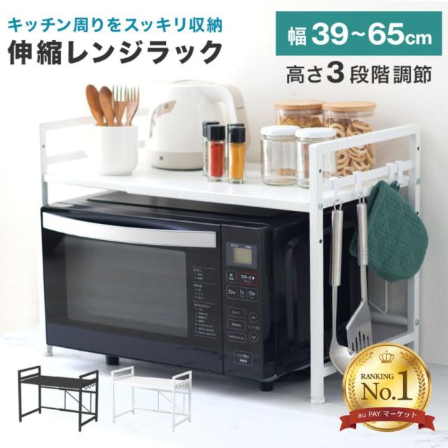\ランキング1位/ レンジラック 伸縮 幅39-65 幅が変わる レンジ上ラック 2段 高さ調整3段階 スチール製 フック付属 防水 防サビ レンジ台 レンジ ラック キッチンラック トースターラック 電子レンジ台 調味料ラック 台所棚 収納 キッチン収納 おしゃれ 送料無料
