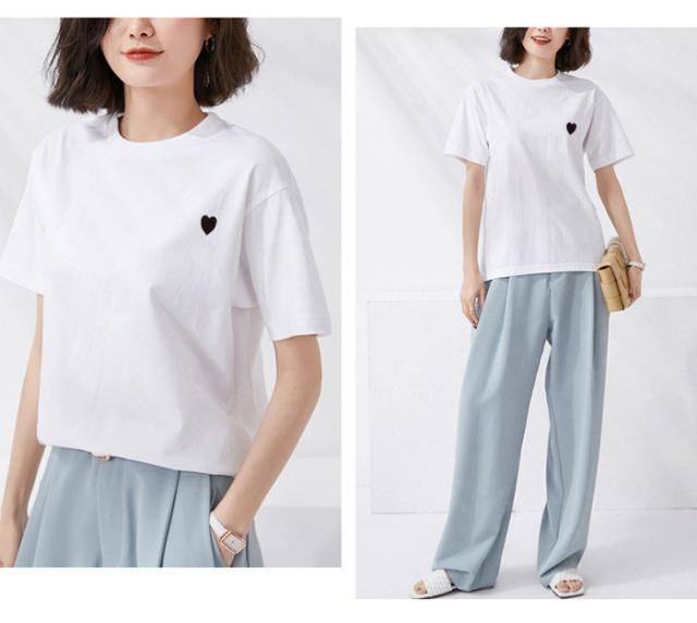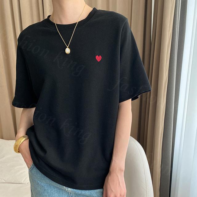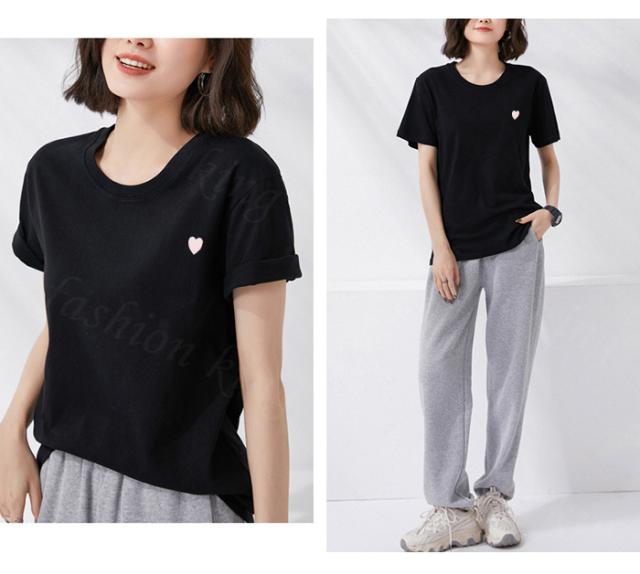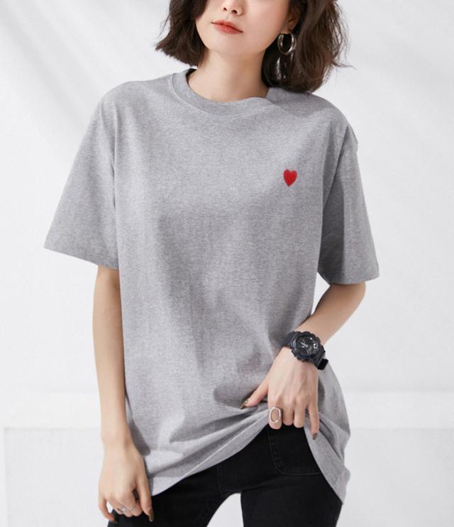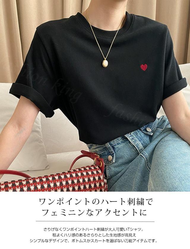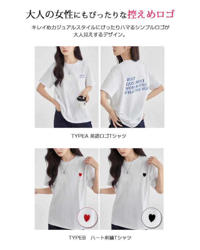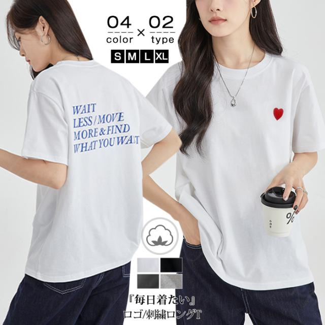 <1点1,490円!2点購入&クーポン利用で> Tシャツ 半袖 tシャツ 秋冬 春新作 レディース ティーシャツ ラウンドネック ゆったり 無地 黒 白 パステルカラー オーバーサイズ ロゴ 刺繍 ハート ビッグtシャツ 大きいサイズ インナー トップス シンプル 大人かわいい