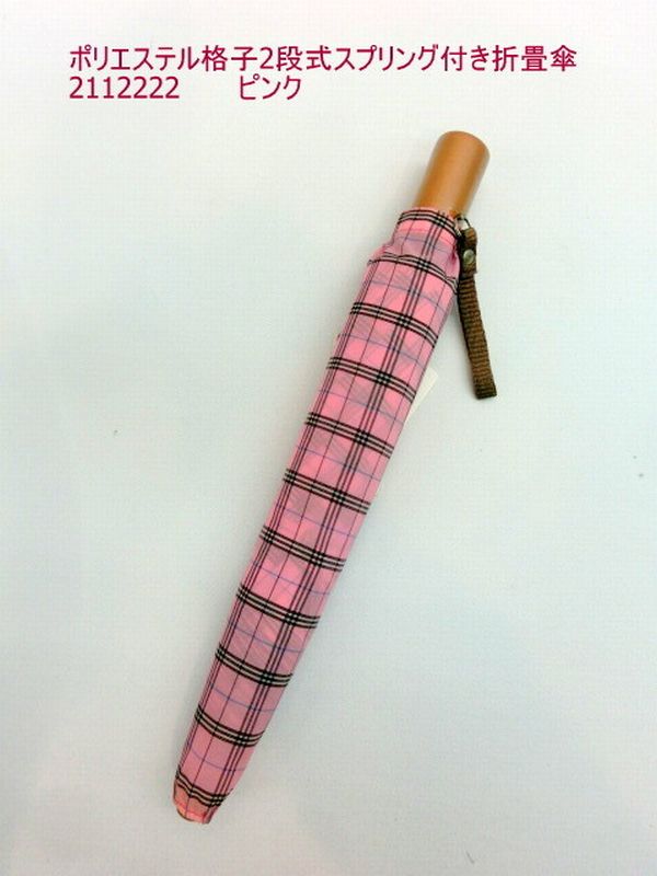 レトロなチェック柄の折り畳み傘です。2段式で畳みやすいバネ付き仕様で、子供さんでも扱いやすく、可愛らしい雨傘です。