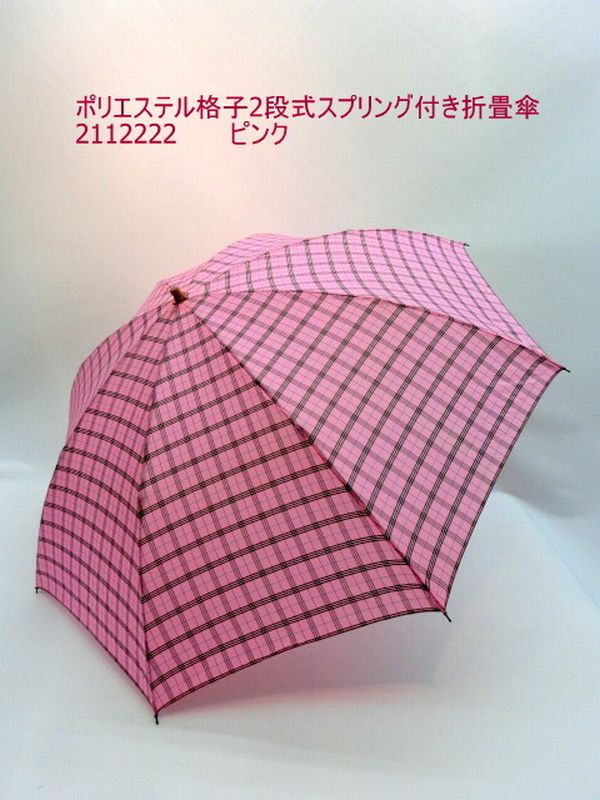 雨傘 傘 ファッション小物 レディースファッション 折畳傘 婦人 ポリエステル 格子 2段式 スプリング付き 折畳 レトロ チェック柄 【送料無料】