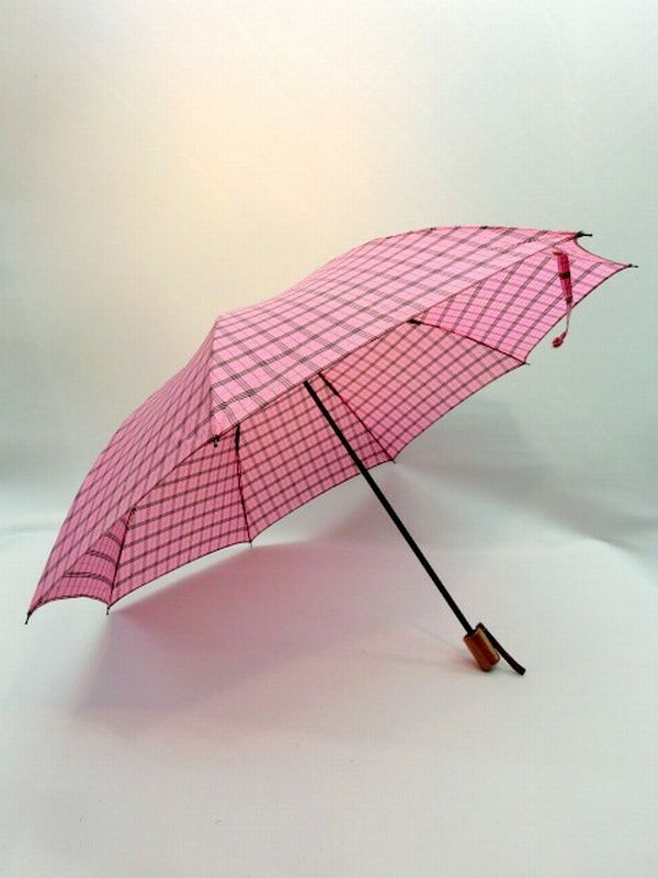 | レトロなチェック柄の折り畳み傘です。2段式で畳みやすいバネ付き仕様で、子供さんでも扱いやすく、可愛らしい雨傘です。 |