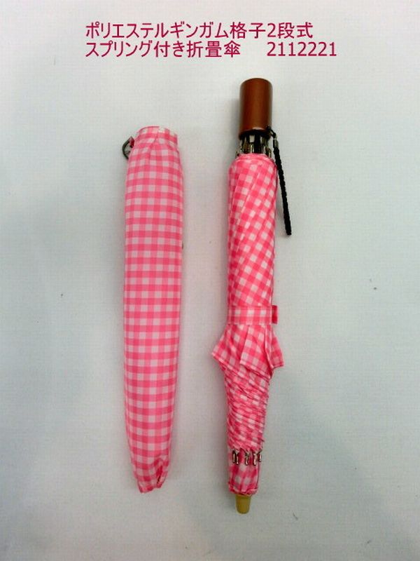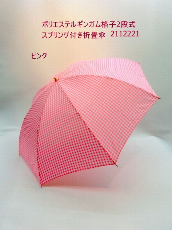 雨傘 傘 ファッション小物 レディースファッション 折畳傘 婦人 ポリエステル ギンガム 格子 2段式 スプリング付き 折畳 可愛い 【送料無料】