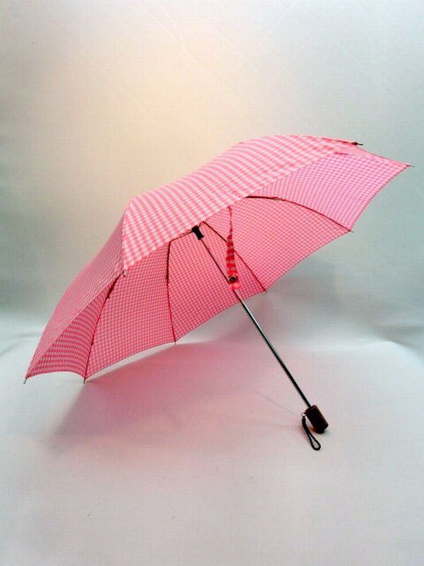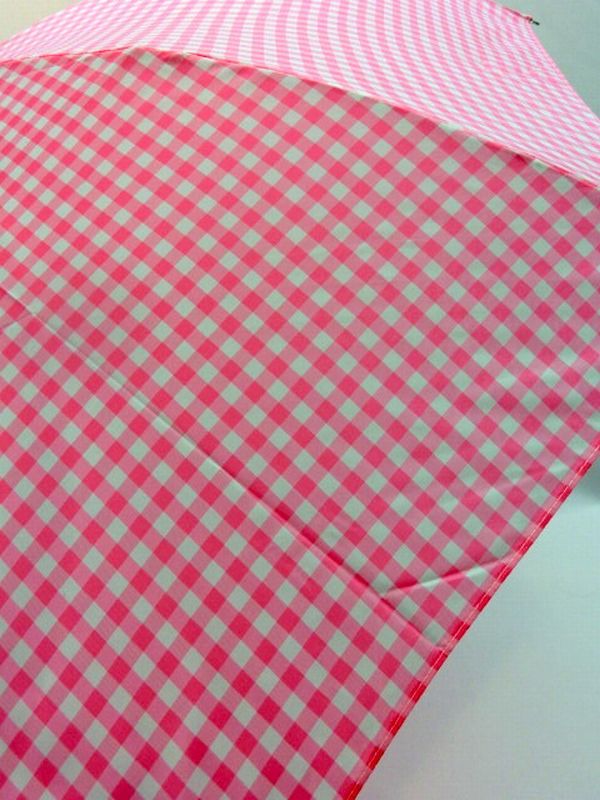 | 可愛いいギンガムチェック柄の折り畳み傘です。2段式で畳みやすいバネ付き仕様で、子供さんでも扱いやすく、可愛らしい雨傘です。 |