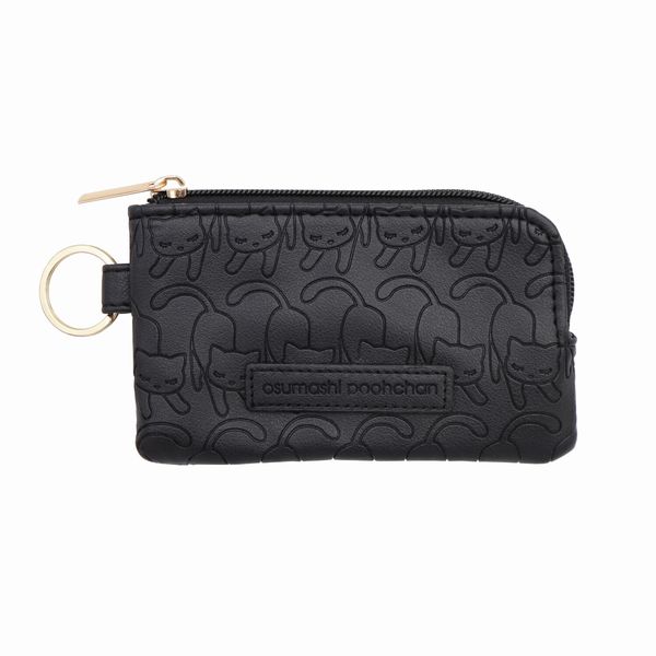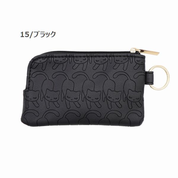 パスケース 定期入れ ファッション小物 レディースファッション のびエンボス 猫 ねこちゃん キャット ネコ キーパスケース 型押し 黒