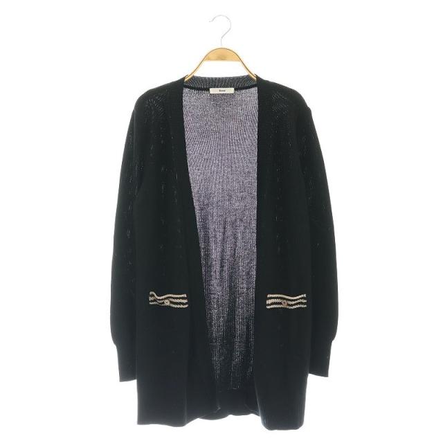 【中古】ルネ Rene ラインポケットデザインリブロングカーディガン ニット 34 ブラック グレージュ /ES レディース