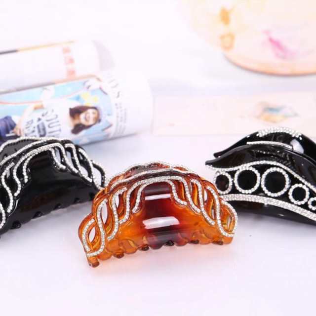 ヘアクリップ レディース ライン ストーン 波 サークル アクセサリー ヘアアレンジ オシャレデザインヘアクリップ ブラック ブラウン 全3