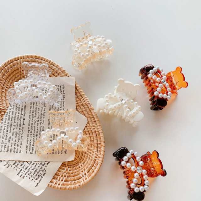 バンスクリップ ヘアアクセサリー 韓国 小さめ くま クマ パール シンプル ハーフアップ ヘアクリップ ヘアピン レディース 女性 髪留め