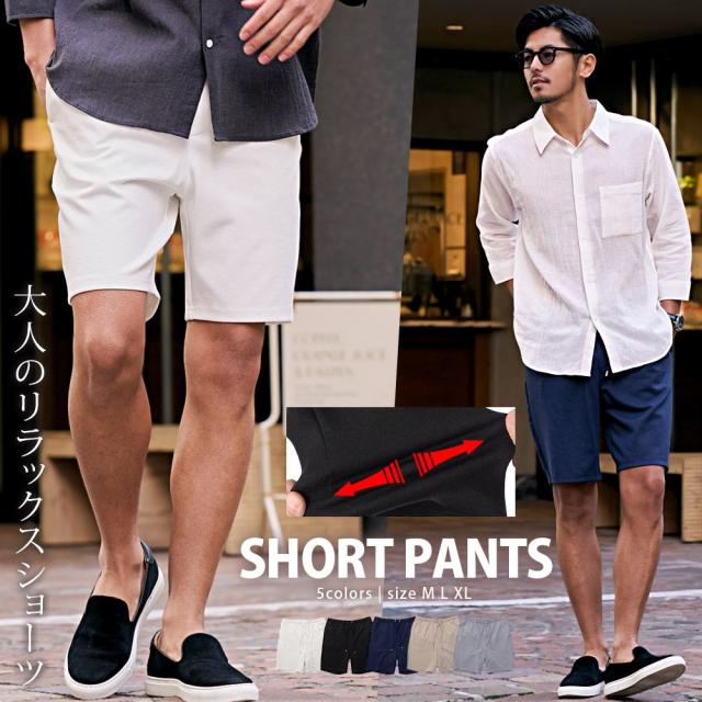 ハーフパンツ メンズ おしゃれ ショーツ ショートパンツ 短パン 半ズボン 膝上 ひざ上 ストレッチ 無地 細身 スリム タイト ホワイト ブラック 黒 CavariA ブランド シンプル 無地 大人 20代 30代 40代 ユニセックス 男性 男 服 春 夏 夏服 春夏 ファッション [CAJP25-02]