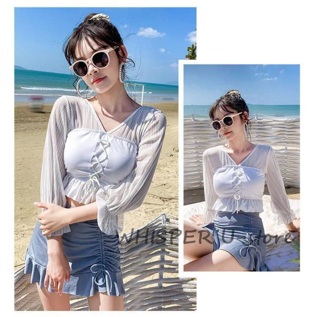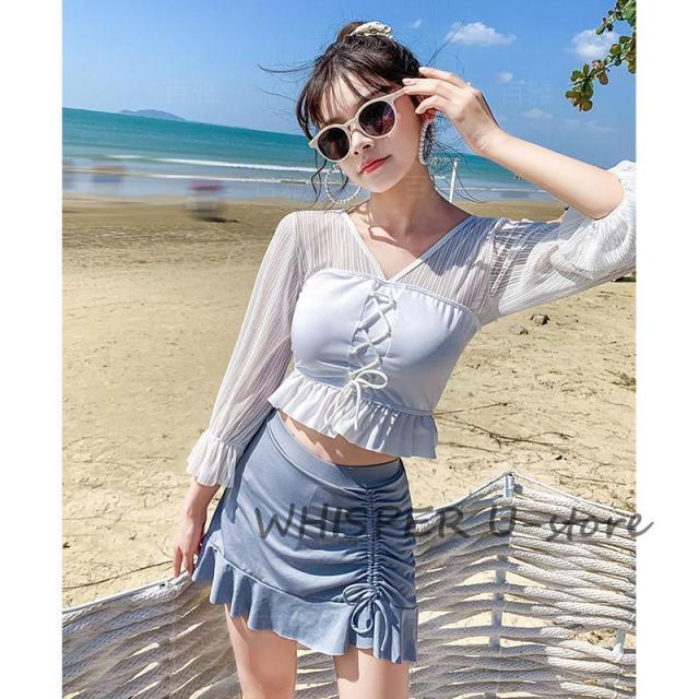 水着 レディース ビキニ 水着 体型カバー 胸パッド付き おしゃれ かわいい 海水浴 ママ水着 2点セット 可愛い フリル 小胸 20代 30代 タンキニ 水着セット