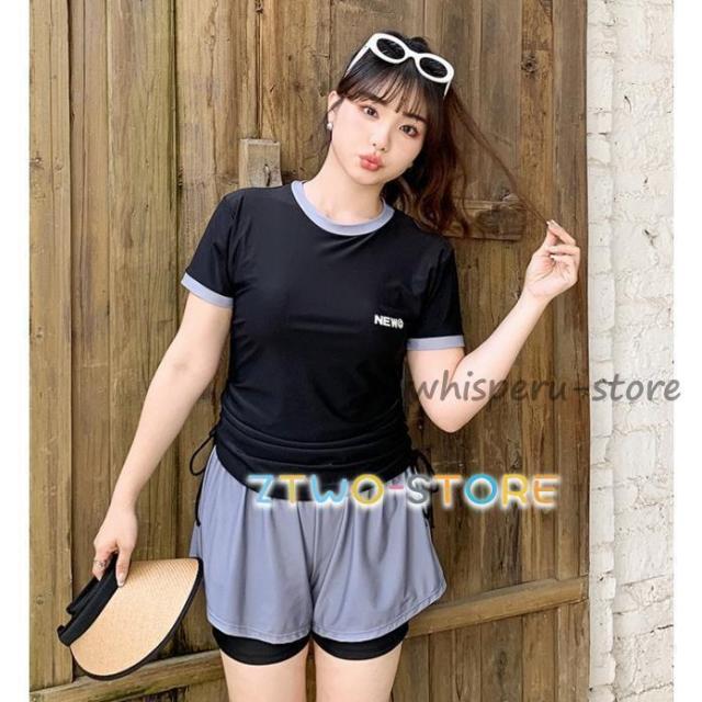 水着レディース 体型カバー 大きいサイズ フィットネス水着 レディース 女性 セパレート ラッシュガード Tシャツ 半袖 ロゴ カバーアップ 2点セット 上下セット 黒 タンキニ お腹 お尻 キュロット パンツ 二の腕 ハイウエスト 3L 4L 5L 6L ぽっちゃり ショートパンツ バイカラー 露出控えめ 日焼け防止 女性水着 ママ水着 シンプル 夏 海 プール ビーチ 20代 30代 40代