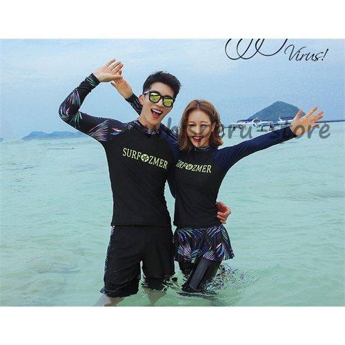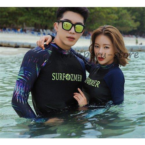 ラッシュガード ペア カップル 長袖 ペアルック 水着 レディース 上下 セット メンズ ウェットスーツ セットアップ 競泳