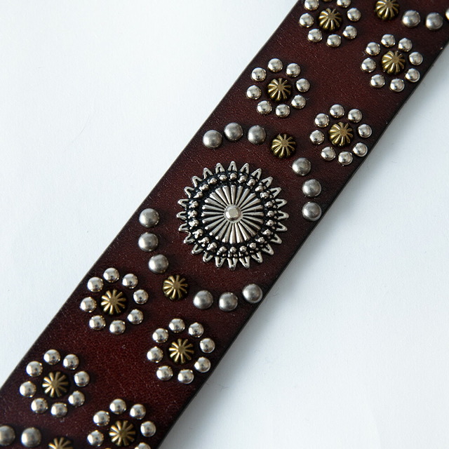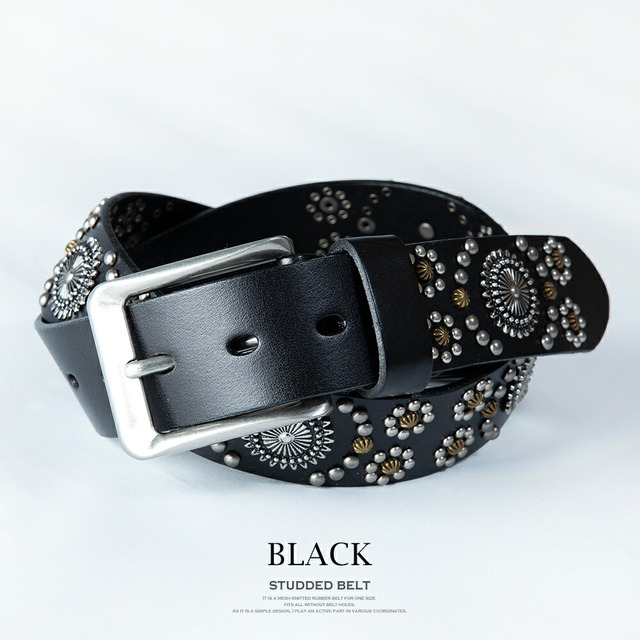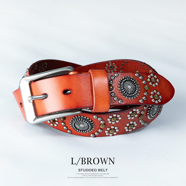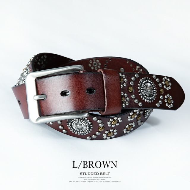 レザー ベルト メンズ スタッズ 本革 スタッズベルト レザーベルト カジュアル アメカジ 革 ZK ブラック 贈り物 プレゼント レトロ ロック ブラウン プチギフト おしゃれ Dブラウン ボヘミアン 古着系 小物 お洒落 インディアン ギフト
