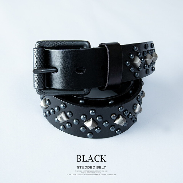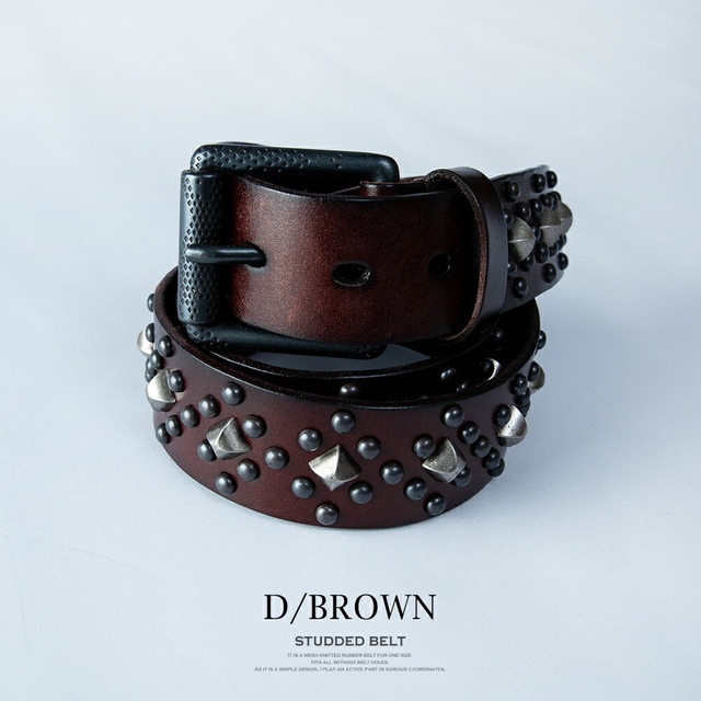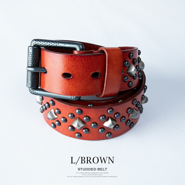 ベルト メンズ レザー スタッズ 本革 スタッズベルト パンク レザーベルト パンクベルト アメカジ 総柄 ブラウン おしゃれ プチギフト ロック 革 ブラック 贈り物