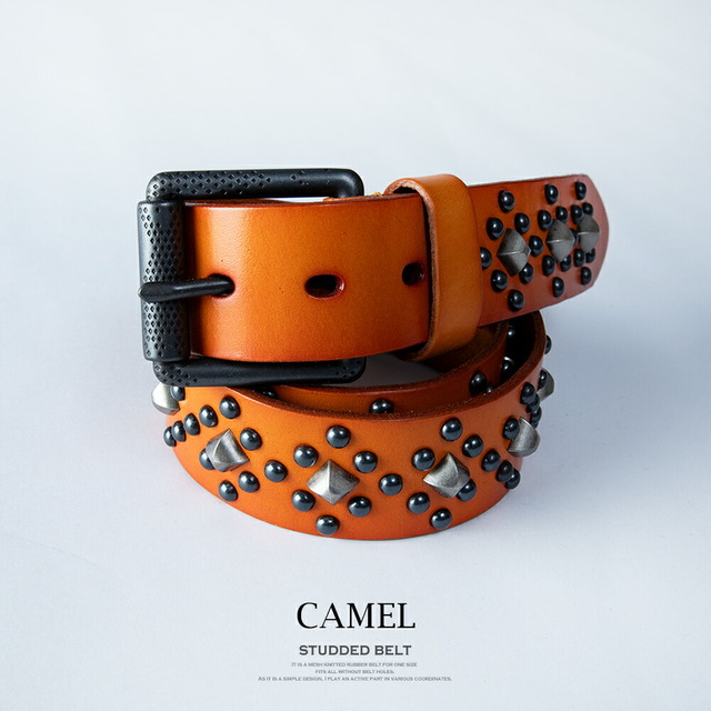 ベルト メンズ レザー スタッズ 本革 スタッズベルト パンク レザーベルト パンクベルト アメカジ 総柄 ブラウン おしゃれ プチギフト ロック 革 ブラック 贈り物 ギフト キャメル サスペンダー お洒落 かっこいい レトロ バンド カジュアル