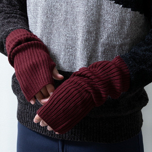 アームウォーマー 冬 ロング カシミヤタッチ 防寒 腕カバー 暖かい 男女兼用 ハンドウォーマー 手首ウォーマー 指なし 秋冬 カジュアル フリーサイズ ワイン 杢グレー