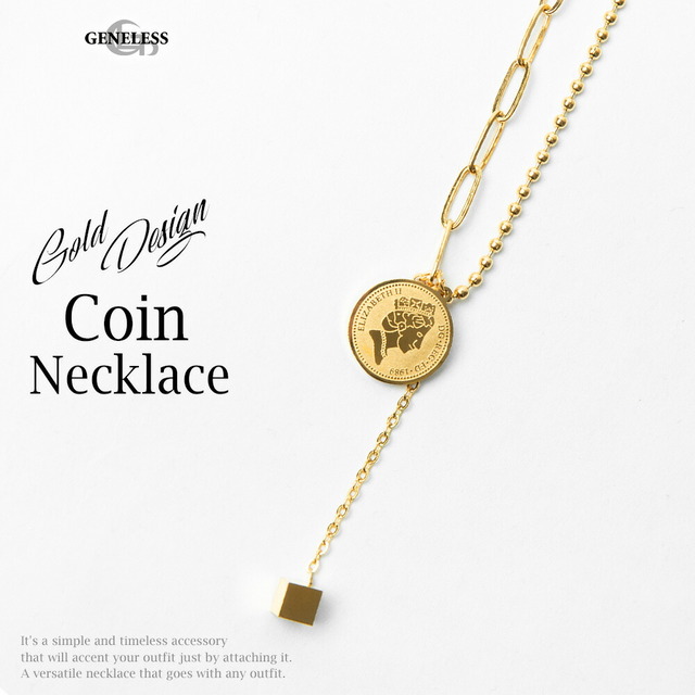 ネックレス メンズ ゴールド おしゃれ キューブ コイン コインモチーフ チェーンネックレス アクセサリー ペンダント IU シンプル チェーン ギフト メンズジュエリー