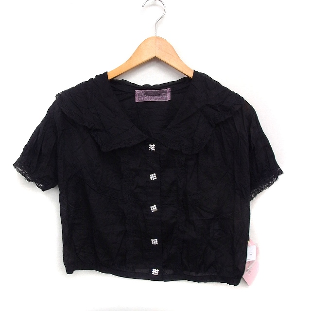 【中古】未使用品 ハニーミーハニー HONEY MI HONEY タグ付き シアー シャツ ブラウス 半袖 レース ビジューボタン