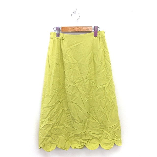 【中古】ローラアシュレイ LAURA ASHLEY ギャザー スカート スカラップ ロング ウエストゴム 薄手 38 ライトグリーン