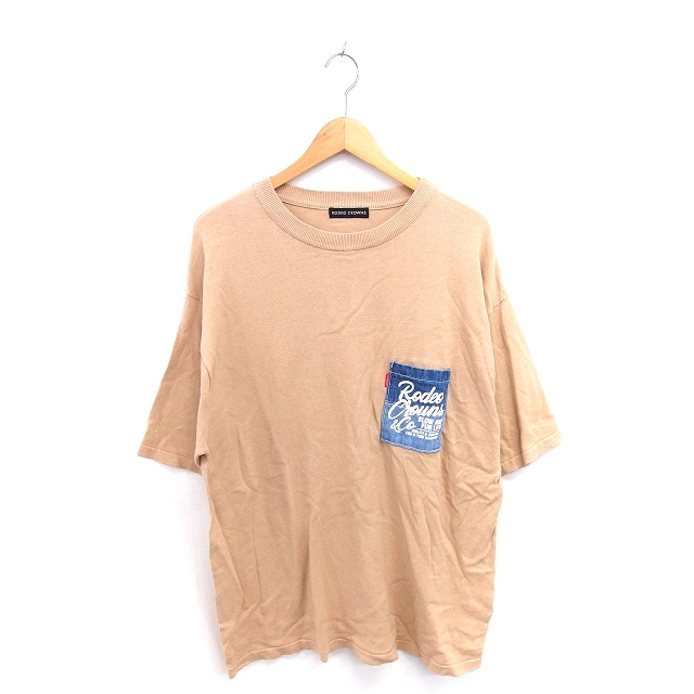 【中古】ロデオクラウンズ Tシャツ カットソー ニット ビッグシルエット ゆったり モックネック 五分袖 L ベージュ 茶