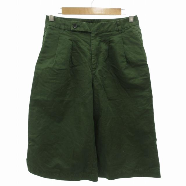 【中古】グリーンレーベルリラクシング ユナイテッドアローズ ハーフパンツ ショーツ タック リネン混 38 緑