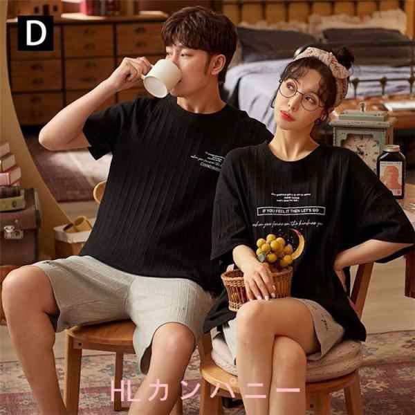 2点パジャマカップルペアルック綿薄手ルームウェア半ズボン夏ペアパジャマ半袖パジャマペアルックお揃いレディースメンズセットアップ単