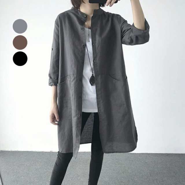 リネン混シャツ レディース ロングシャツ 綿麻混 シャツワンピ トップス リネン シャツワンピース 長袖 ロングカーディガン ナチュラル