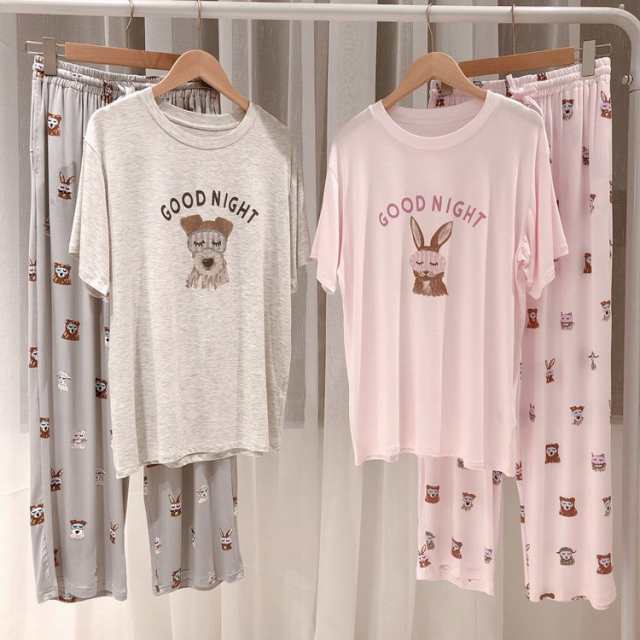 パジャマ ルームウェア レディース 春夏 半袖 パジャマ モダール綿上下セット ゆったり オシャレ ルームウェア 部屋着 犬柄 カジュアル