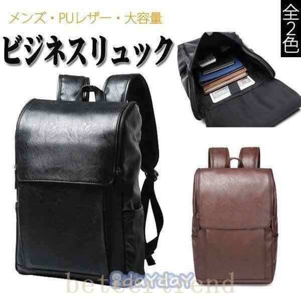 ビジネスリュックPUレザーメンズリュックメンズバッグビジネスバッグ合皮合成皮革フェイクレザー軽量出張通勤通学