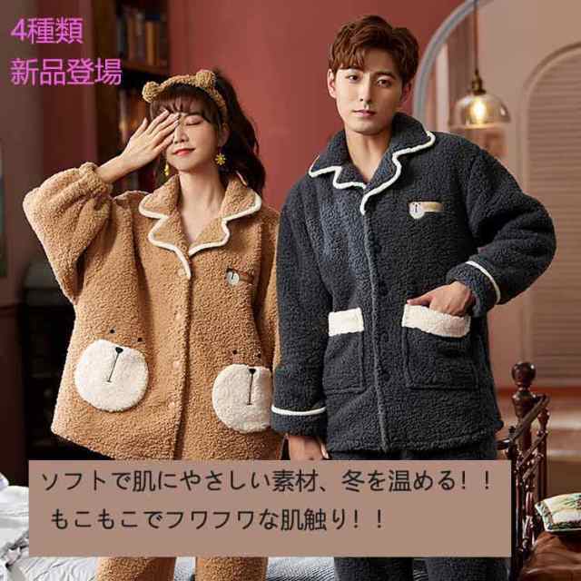 新品 ルームウェア パジャマ 長袖 着る毛布 カップル 部屋着 くま モコモコ 秋冬 レディース メンズ 上下セット【M---3XL】