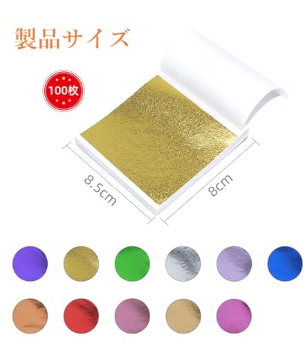 ・?いろいろなシーンに使える金箔ご自分の作品などに貼り付けて加工する場合は、フレークタイプや既に加工がなされている金箔よりも、この工芸用のシートタイプがおすすめです。8*8.5cmの大きさがあり、広い面積にも貼り付けることができます。ヘアとセルフネイル、DIYジュエリー・手作りアート・絵画・家具装飾・粘土ジェル、ネイル用品、ハンドメイド作品など幅広い用途にお使いいただけます。