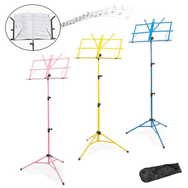 キャリングバッグ付き折りたたみ式軽量ミュージックスタンド、アルミニウム合金三脚、高さ調節可能ホルダー、カラフル