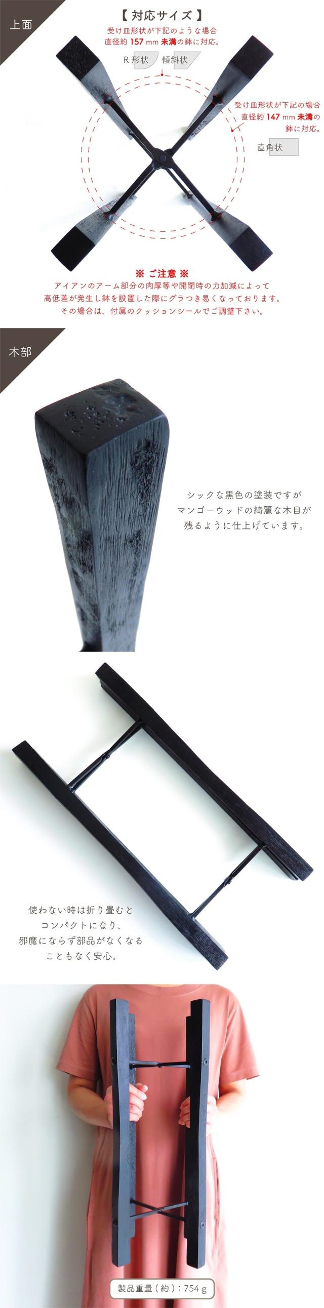 ポットスタンド フォールディングポットスタンド ブラック トールタイプ 折り畳み式 5号鉢推奨 直径15.7cm未満対応 天然木 アイアン 植木鉢・鉢・プランター用 ガーデニング 雑貨 モダン シック モノトーン インテリア