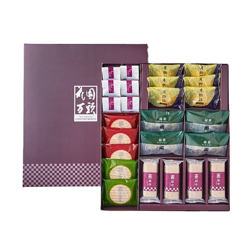 ●ぬれ甘なつとお手玉×6、花園煎餅(小倉)×3、花園煎餅(抹茶)×2、抹茶フィナンシェ×4、月物語×6、花園最中×4 代表銘菓「ぬれ甘なつと」、ぬれ甘なつと入りの新商品「抹茶フィナンシェ」、花園万頭伝統のこし餡で仕上げた手作りの「花園最中」とオリジナルの小倉クリームと抹茶クリームをサンドして仕上げた「花園煎餅」、白あんベースの「月物語」との詰合せです。