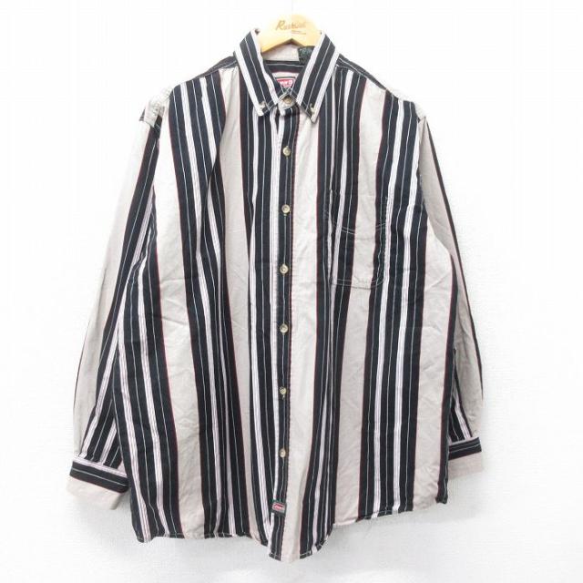 【商品名】 XL★古着 長袖 シャツ メンズ 00年代 00s 大きいサイズ コットン ボタンダウン 赤他 ストライプ【spe】