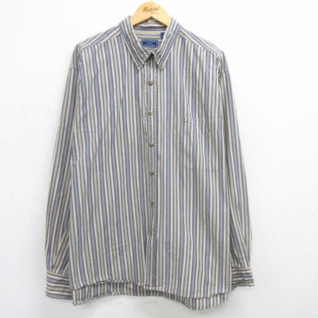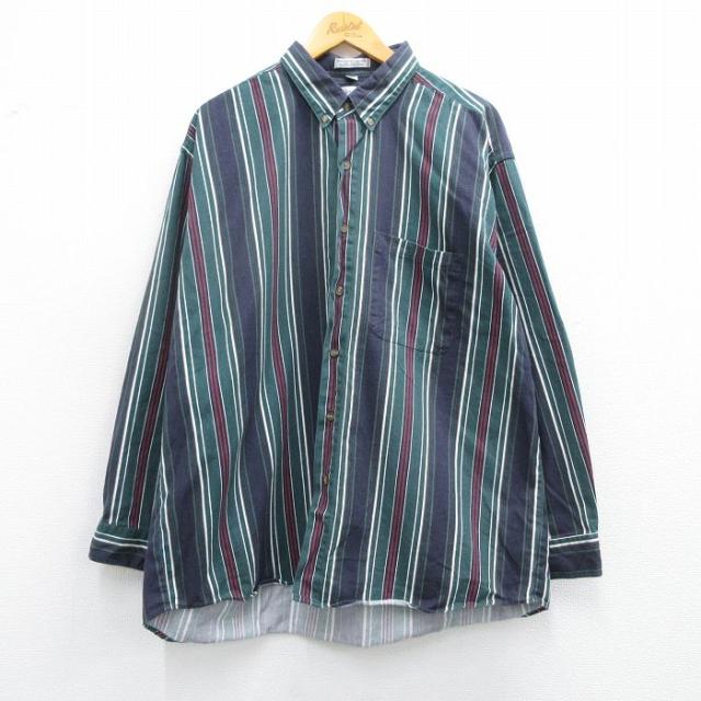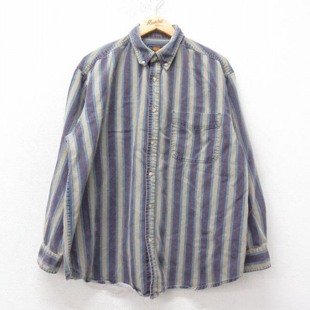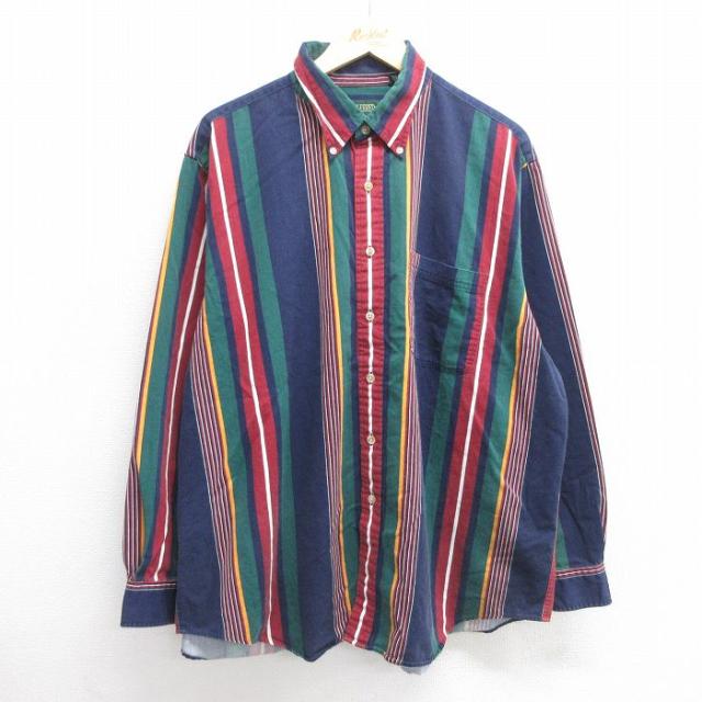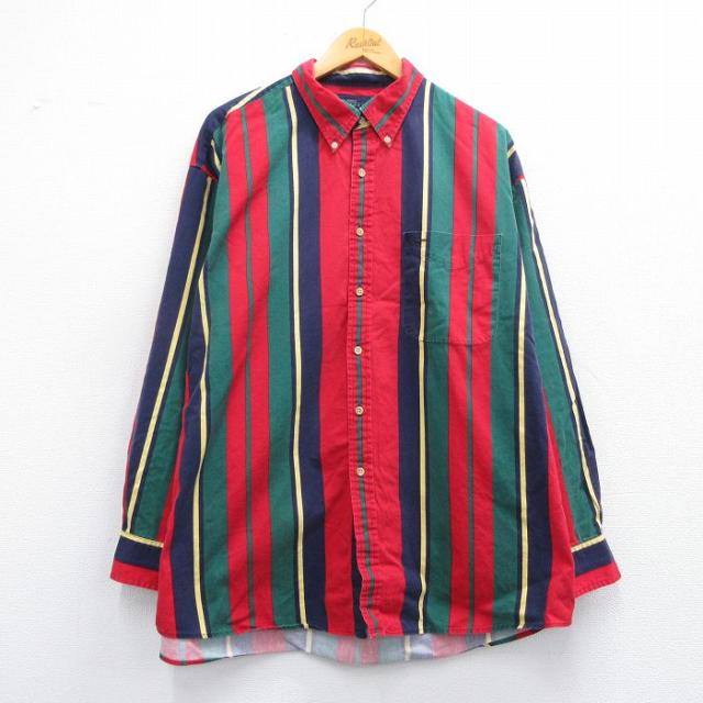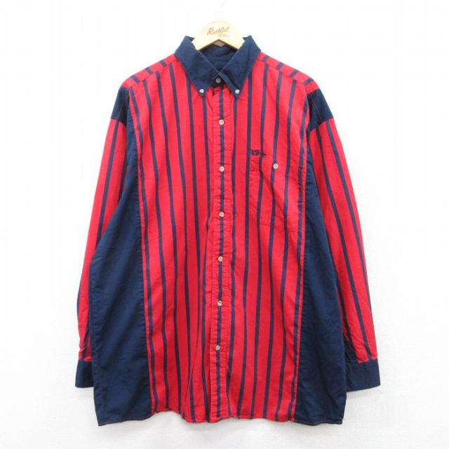 古着 長袖 シャツ メンズ 00年代 00s 大きいサイズ コットン ボタンダウン 赤他 レッド ストライプ spe XLサイズ 中古 トップ 中古 古着