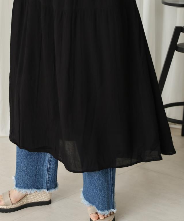 表地はさらさらとした肌触りの良いレーヨンに、裏地は風通しの良い綿を使用した涼しい1枚です。ゆったりとしたAラインはトレンドに左右されないシルエットでシーズンを跨いで長くお使いいただけます!!小物やインナーを変えて、色んなシーンで活躍してくれます。